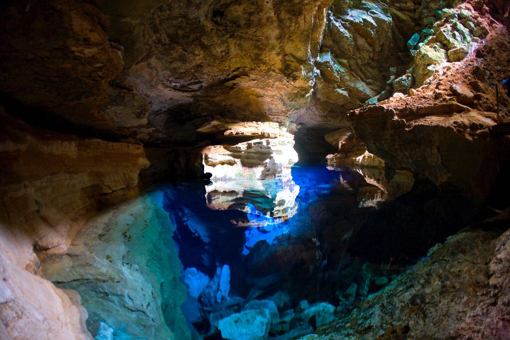 The most unique cave experience was swimming in the brilliant blue waters of Poco Azul. In high season tourists face a 4-hour queue for just 15 minutes in the cave; luckily we were the first people there so went straight in. The water was so completely still and clear to the rock beneath that, as we descended the rickety steps, I was surprised to find the water level about 10m higher than it appears!