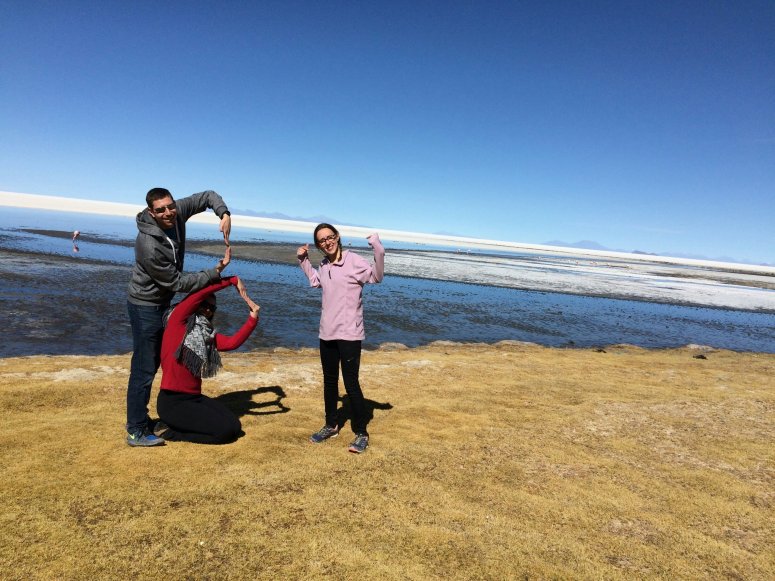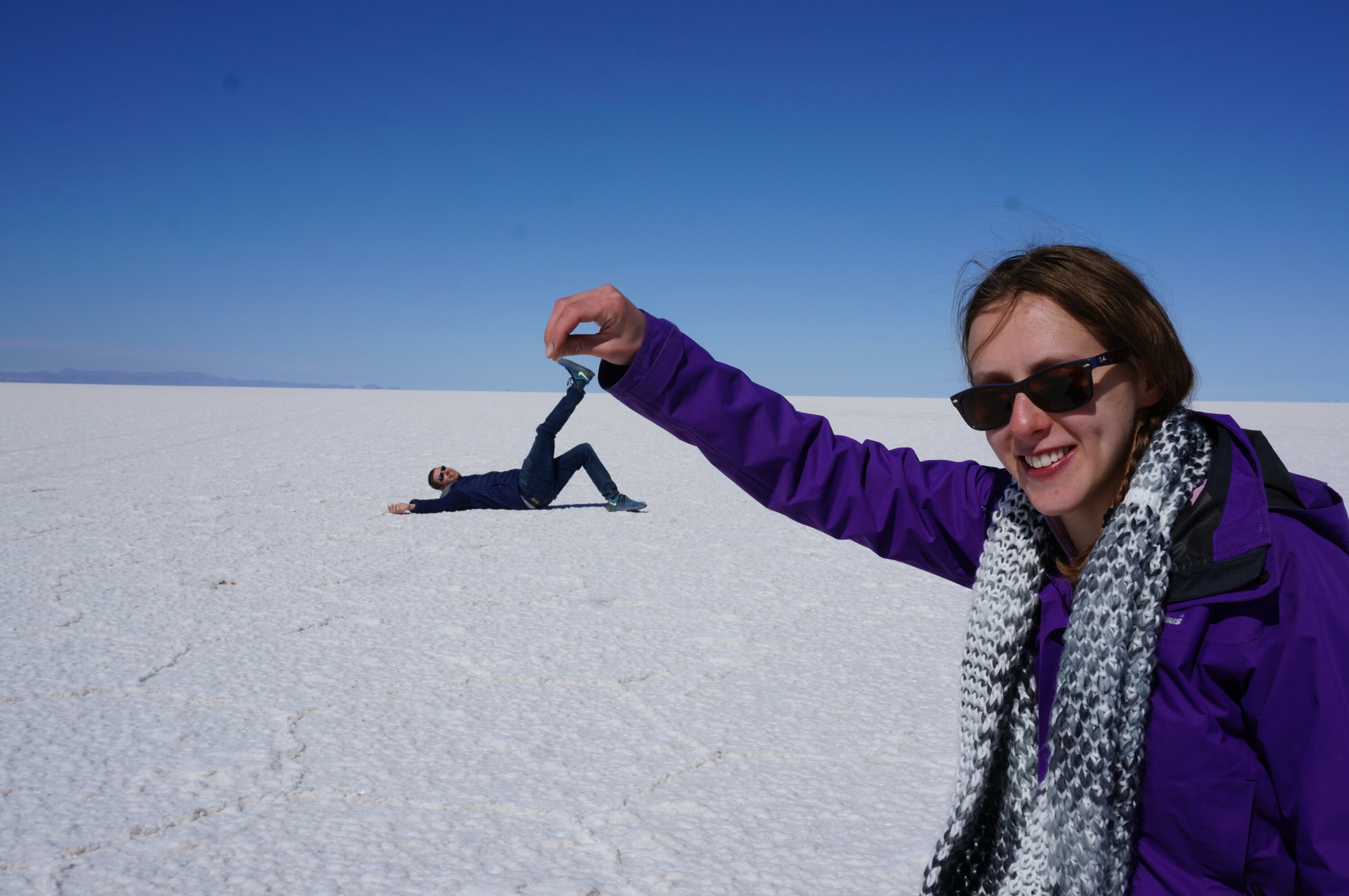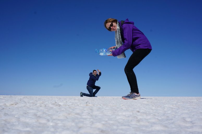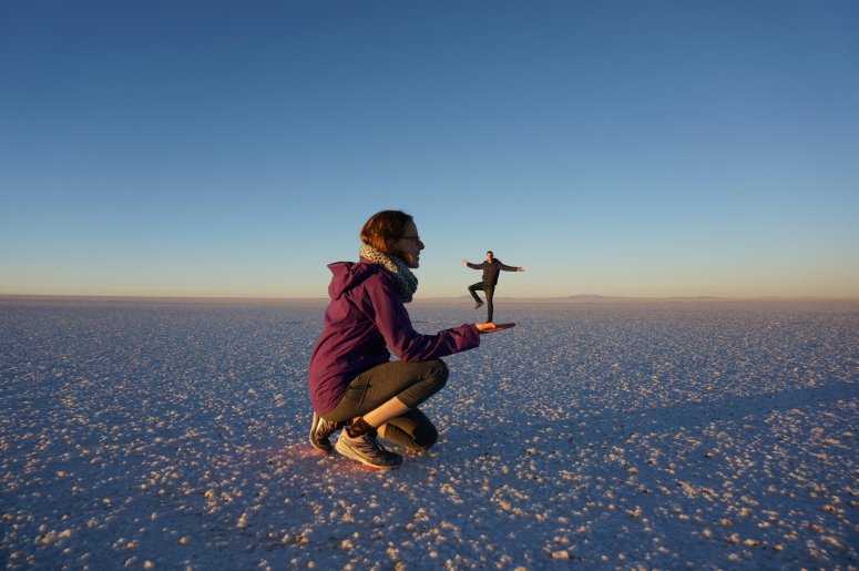 After a day of llamas and quinoa (they even had quinoa beer) we arrived at the spectacular salt flats of Uyuni where, after overcoming the sheer amazement of the place, we managed to get a few amusing photos thanks to the vast flatness distorting perspective.