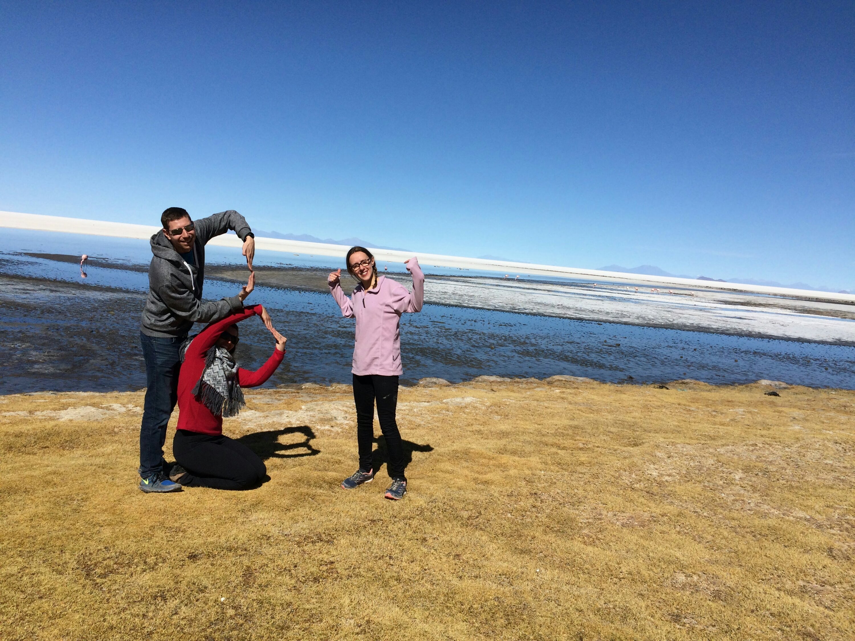 From the moment we stepped off the 4×4 the altitude hit us. A bizarre feeling of breathlessness that made gentle walking a challenge let alone jumping selfies. All stoked up on coca tea/sweets and with our hearts pounding, we toured the rugged landscapes and lagoons of Bolivia.