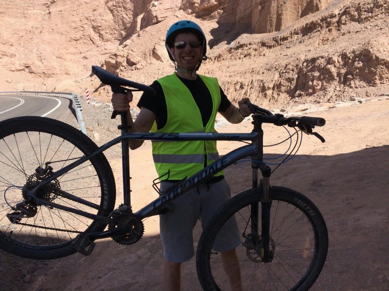 After an hour of steep hill-climbing whilst being battered by a sand-storm (imagine the feeling of a thousand tiny needles stabbing into any exposed skin!) we were informed that our route should have included turning left 5k earlier!