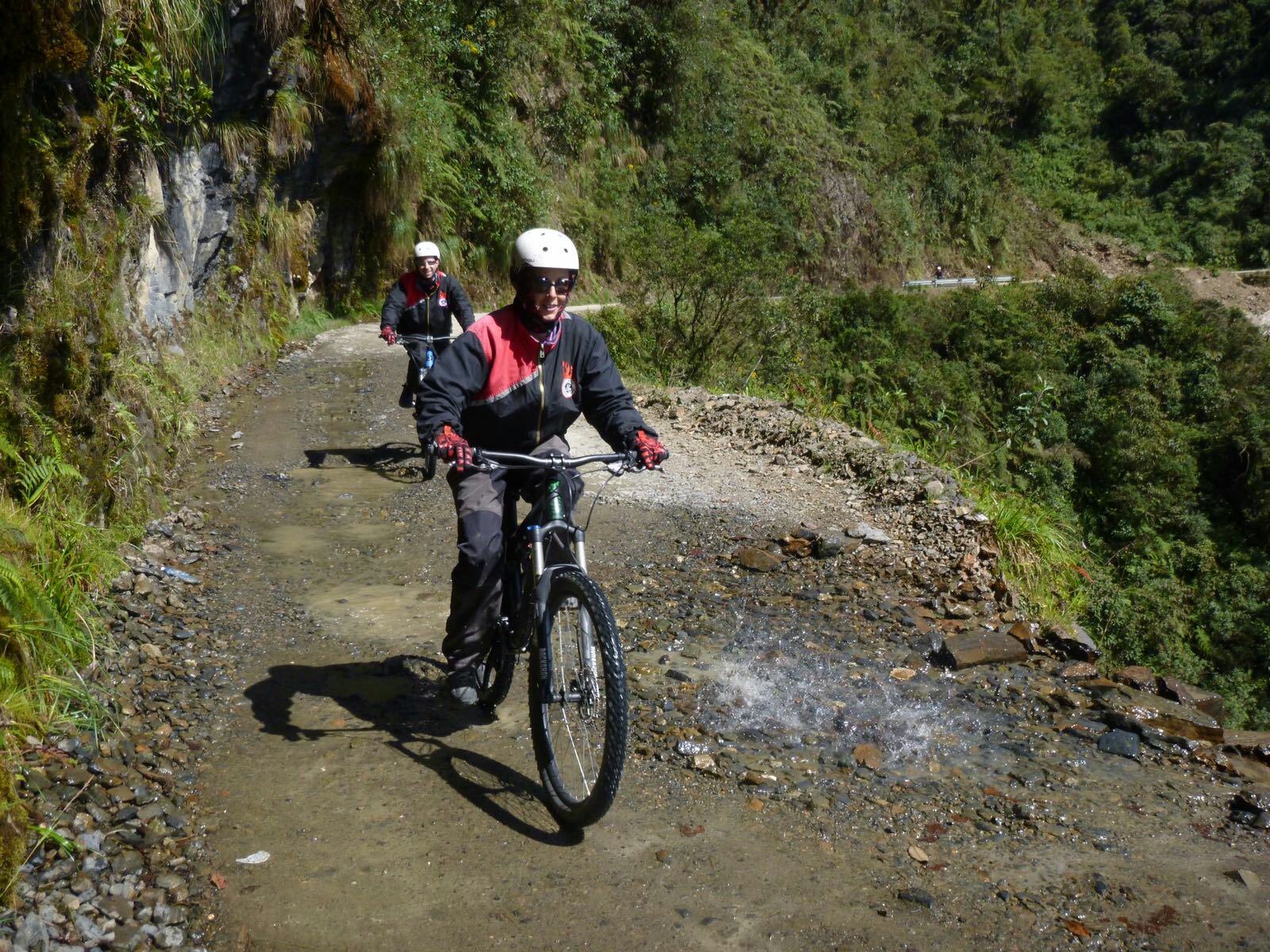 One of the stand out moments of the whole trip for me was Camino de la muerte aka…Death Road! The world’s most dangerous road gains it’s name from the ~300 people killed yearly from car accidents along this narrow winding mountain road with blind corners, overhanging rocks, waterfalls and of course a 1000m sheer drop. Thankfully, a new road was built in 2006 and since then, the old one is primarily used by crazy, thrill-seeking tourists (and us) on bikes looking to descend the 64km rocky dirt road from 4,700m high to 1,200m. Whilst we were frequently reminded that several cyclists still die each year, even I (the nervy-wobbly cyclist) felt safe in the hands of our Gravity (highly recommend this company) guide Scott from Scotland. The scenery was spectacular and my nerves quickly faded away as my confidence grew. Starting to believe that I may in fact survive the day, I even started enjoying myself and, whilst there were a couple of hairy moments, we both arrived back injury free and elated. We thought it best to wait until this point to let our parents know what we had just done!